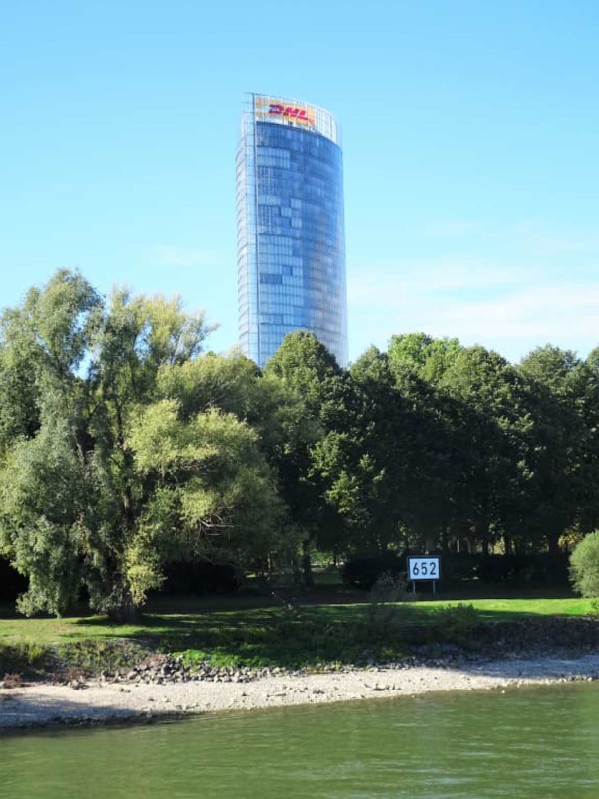 Der Post Tower vom Rhein aus gesehen