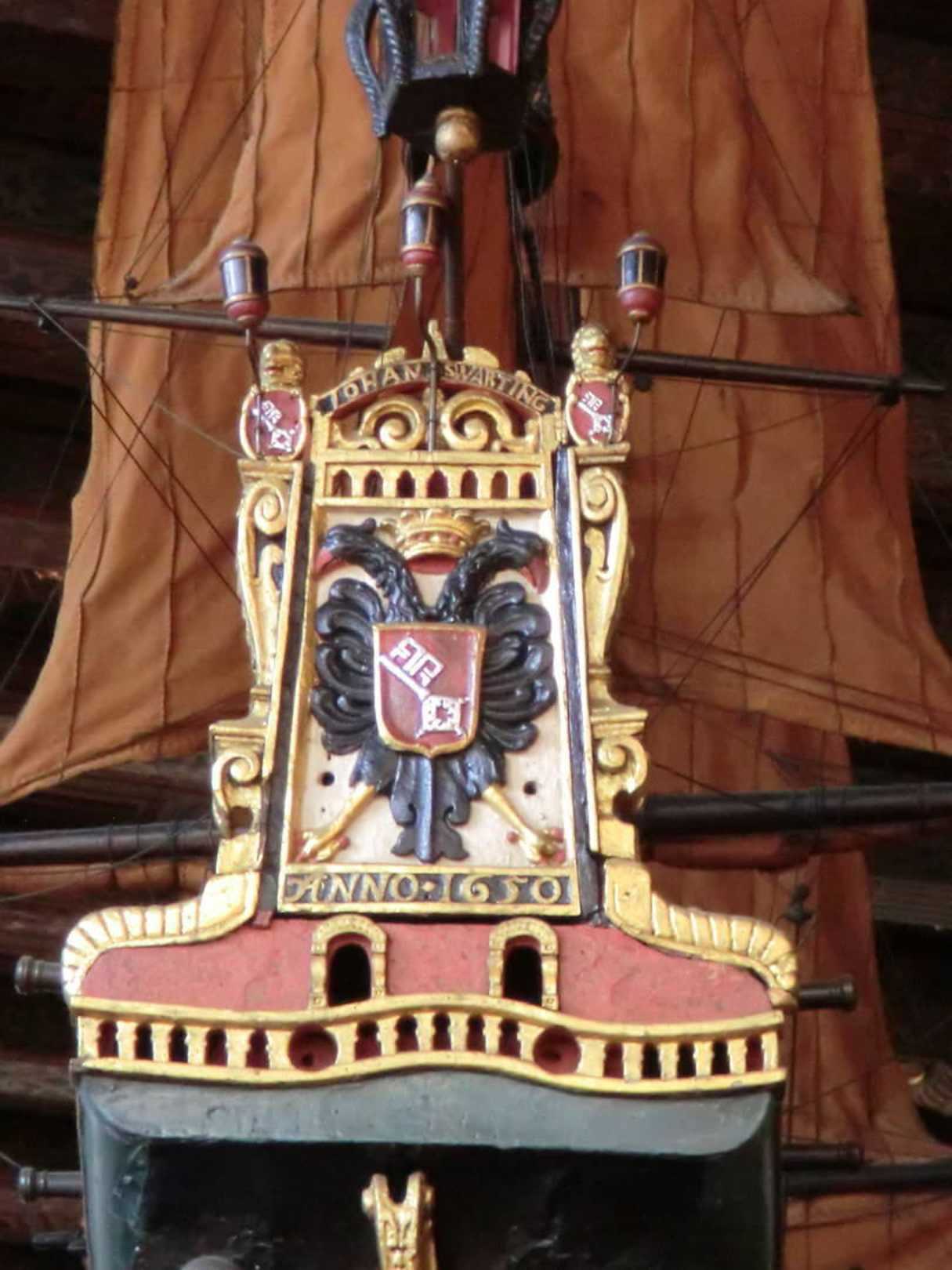 Heckpartie eines Schiffsmodells