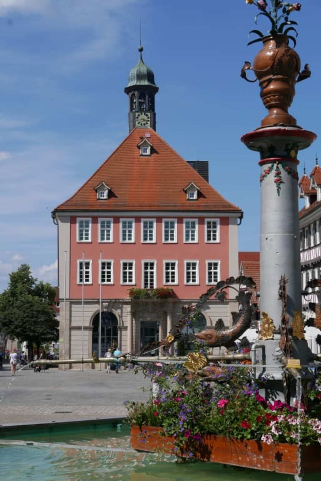 Rathaus mit Teil des Brunnens