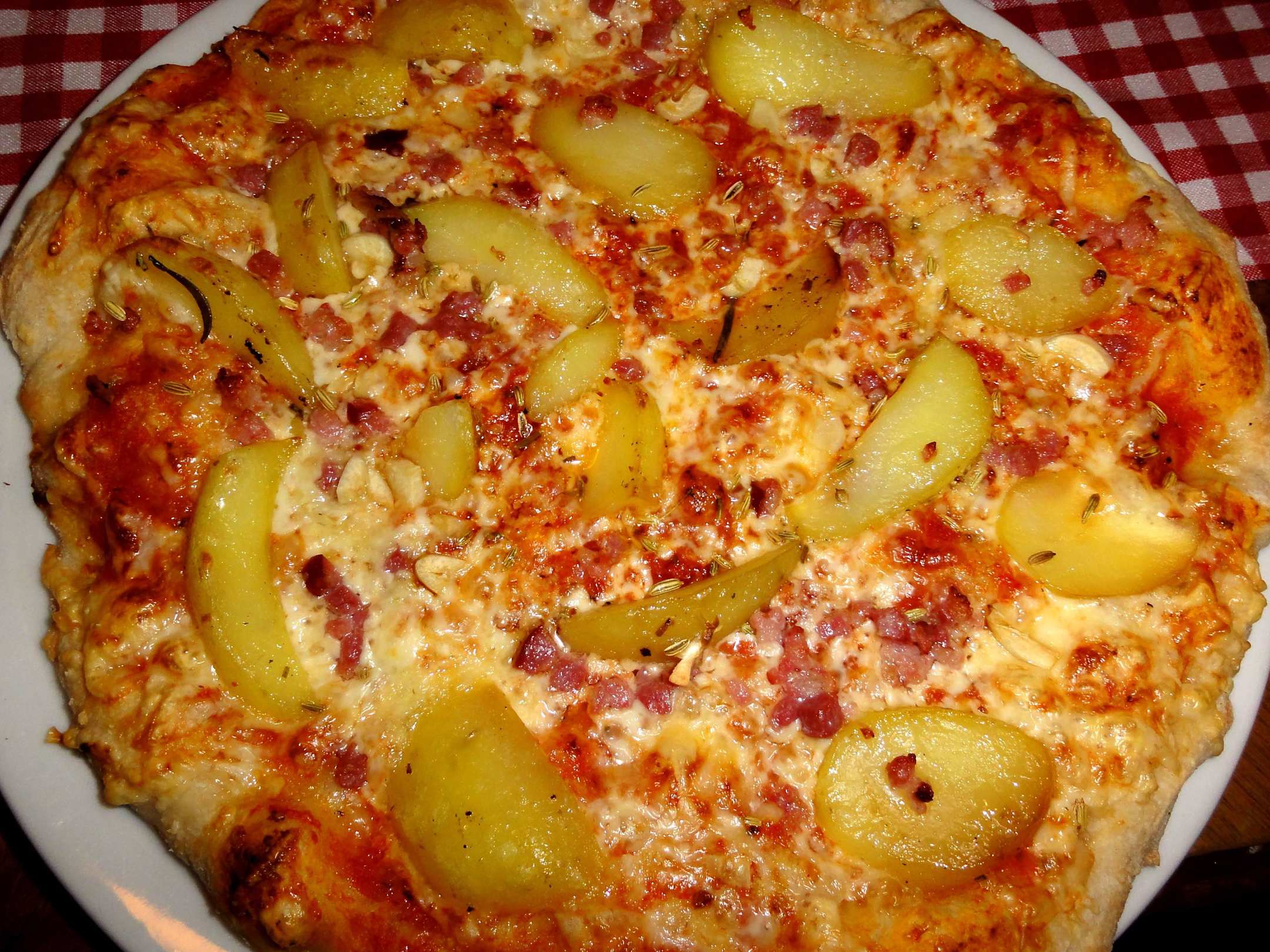 Pizza Pancetta mit Kartoffeln und wildem Fenchel