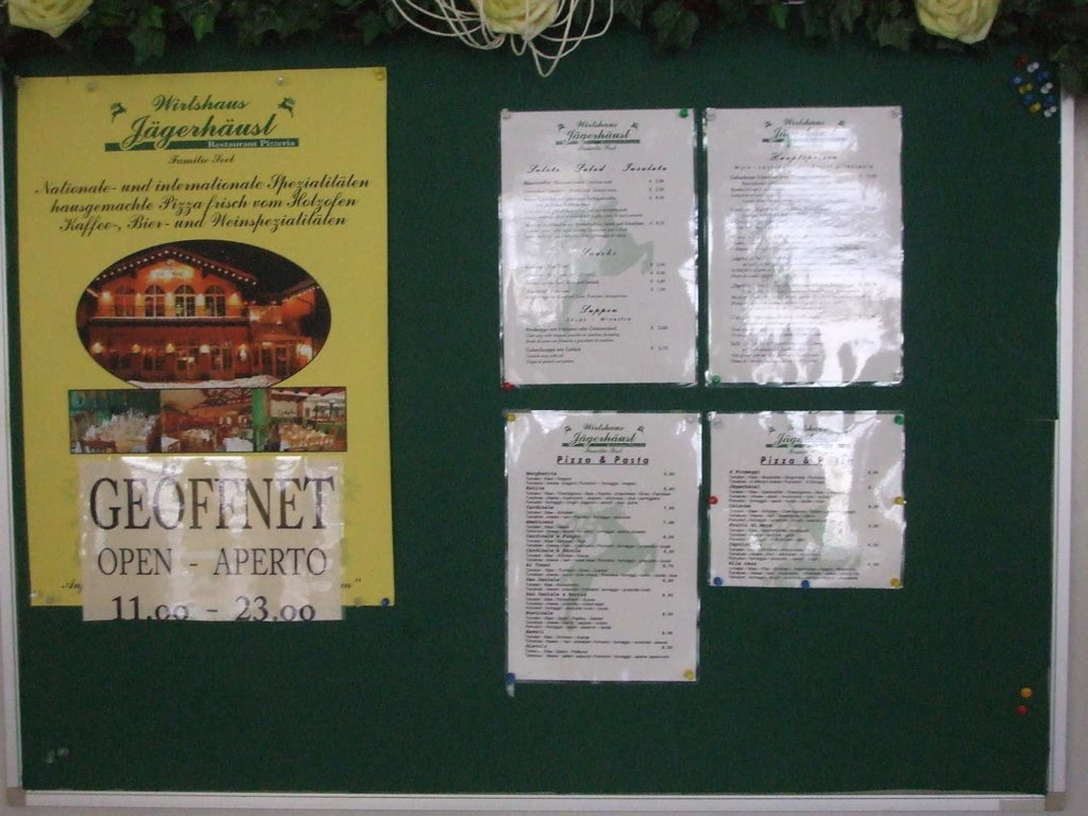 Grünes Brett mit Angaben zum RestaurantJägerhäusl