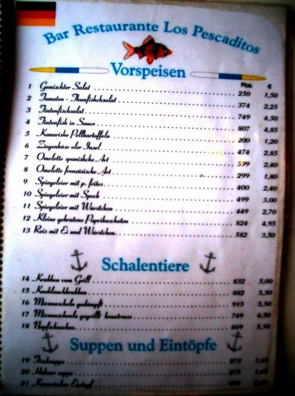 Speisekarte Restaurant Los Pescaditos 1
