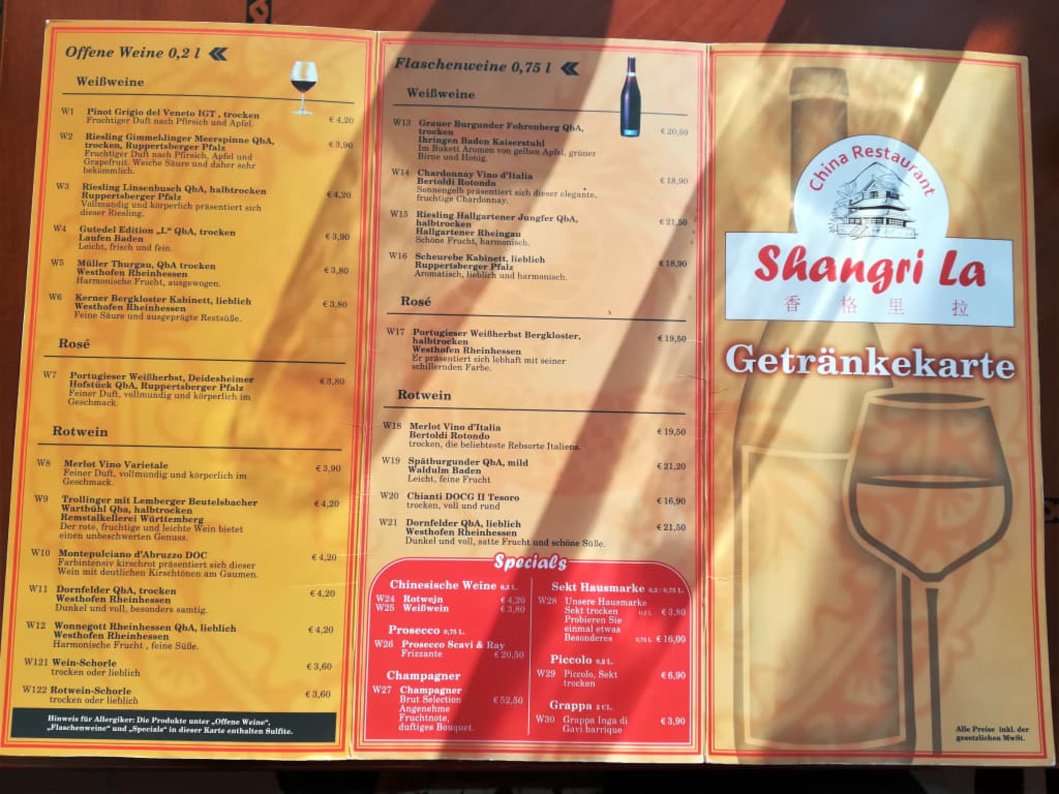 Die Getränke-Karte