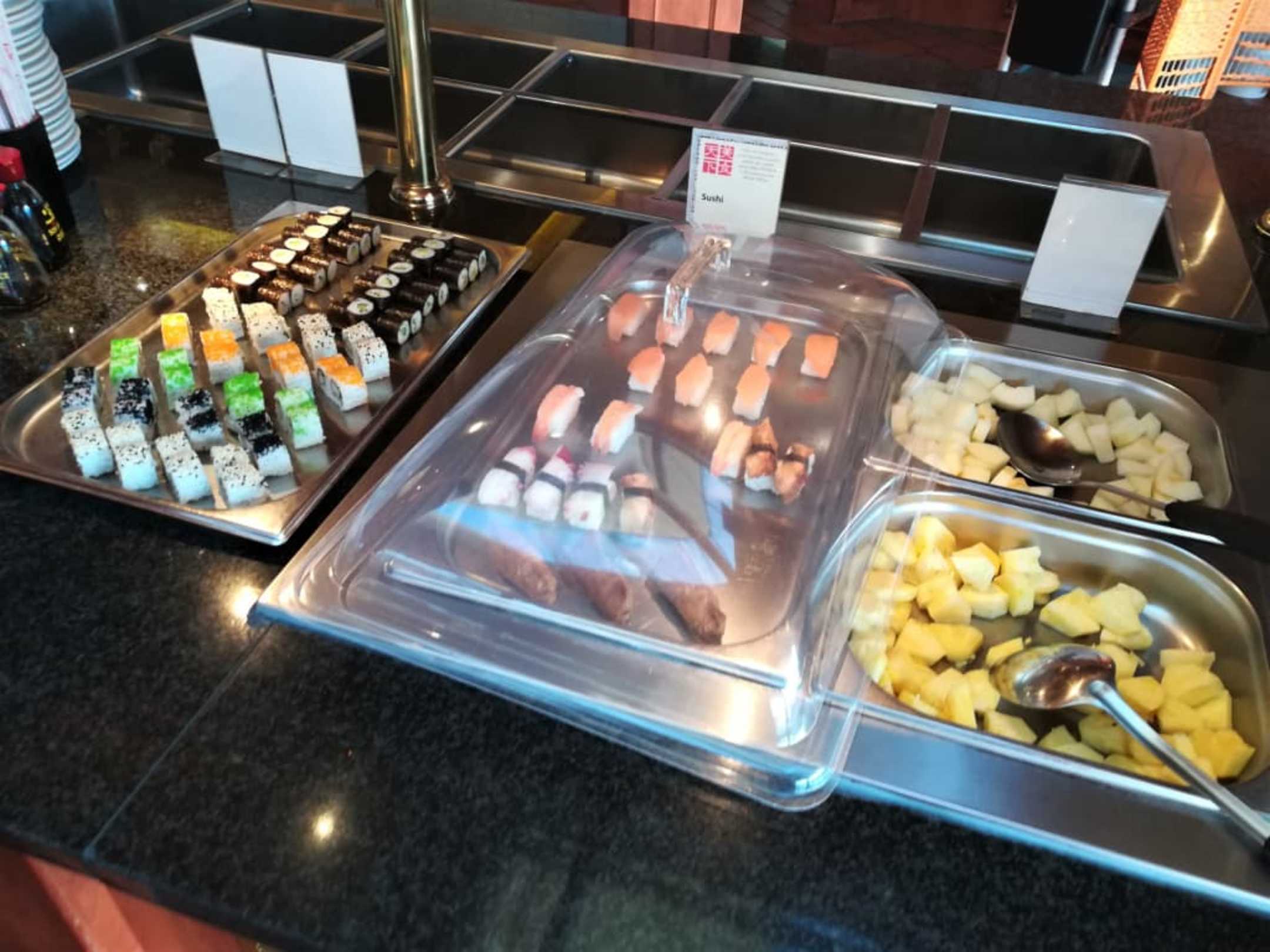 Das Obst und Sushi Buffet.