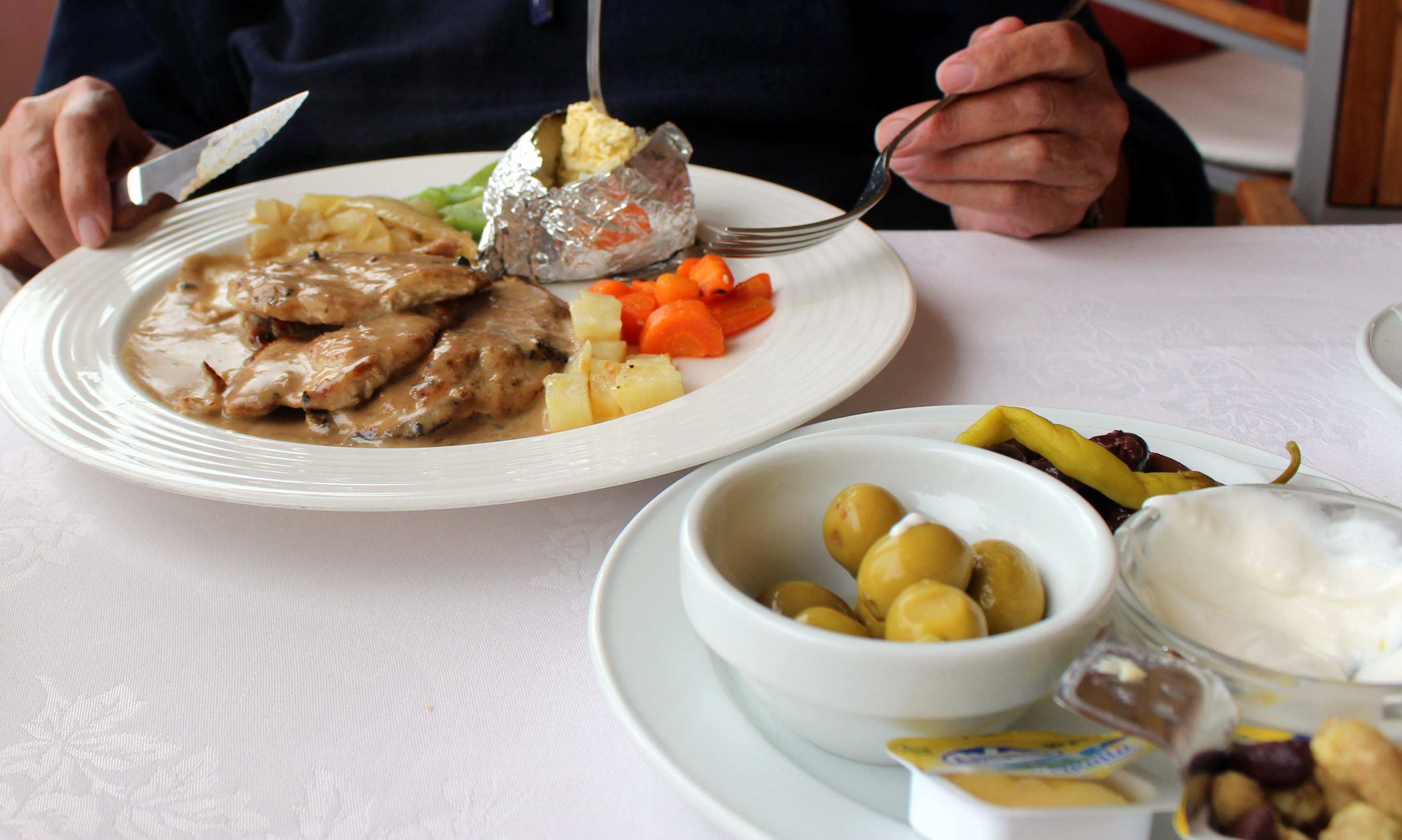 Rindsfilet und rechts Ajoli und Oliven