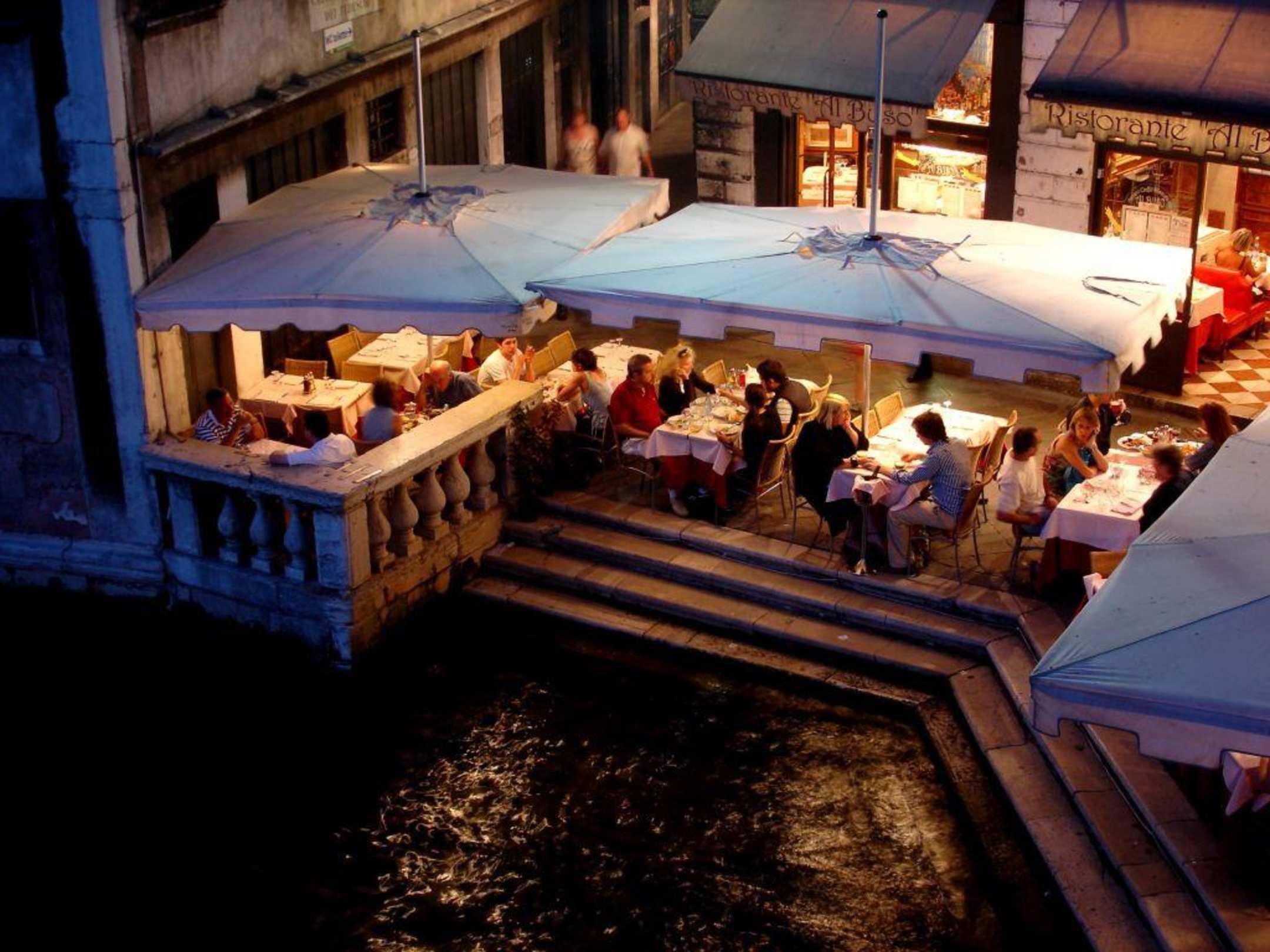Restaurants am Fuße der Rialtobrücke
