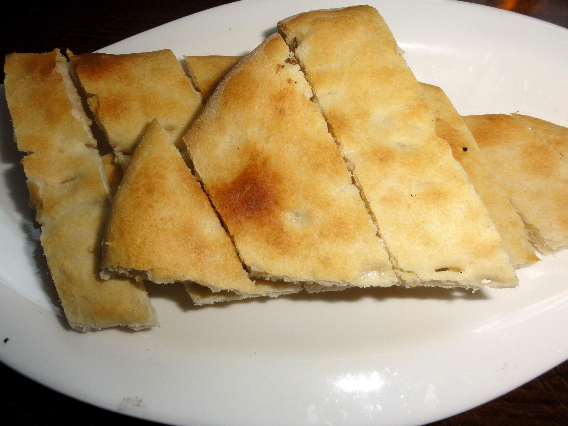 Warmes Pizzabrot mit Olivenöl, Salz und Pfeffer