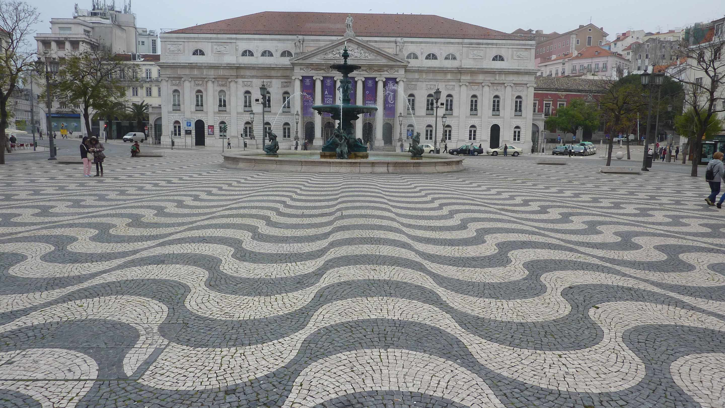 Rossio mit Boden, Brunnen, Theater