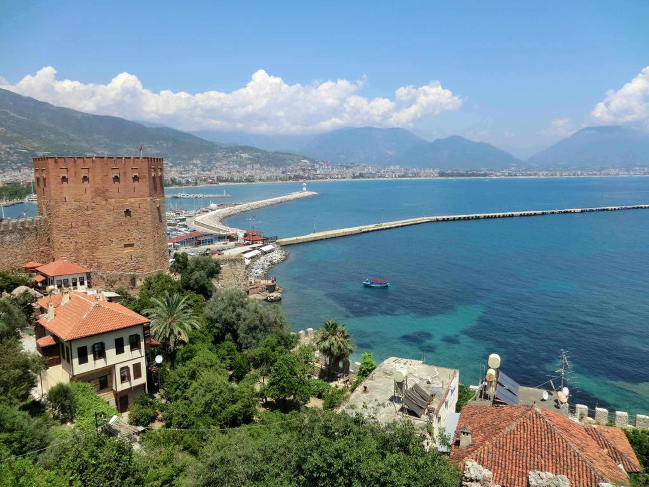 Blick auf den Roten Turm und Hafen von Alanya