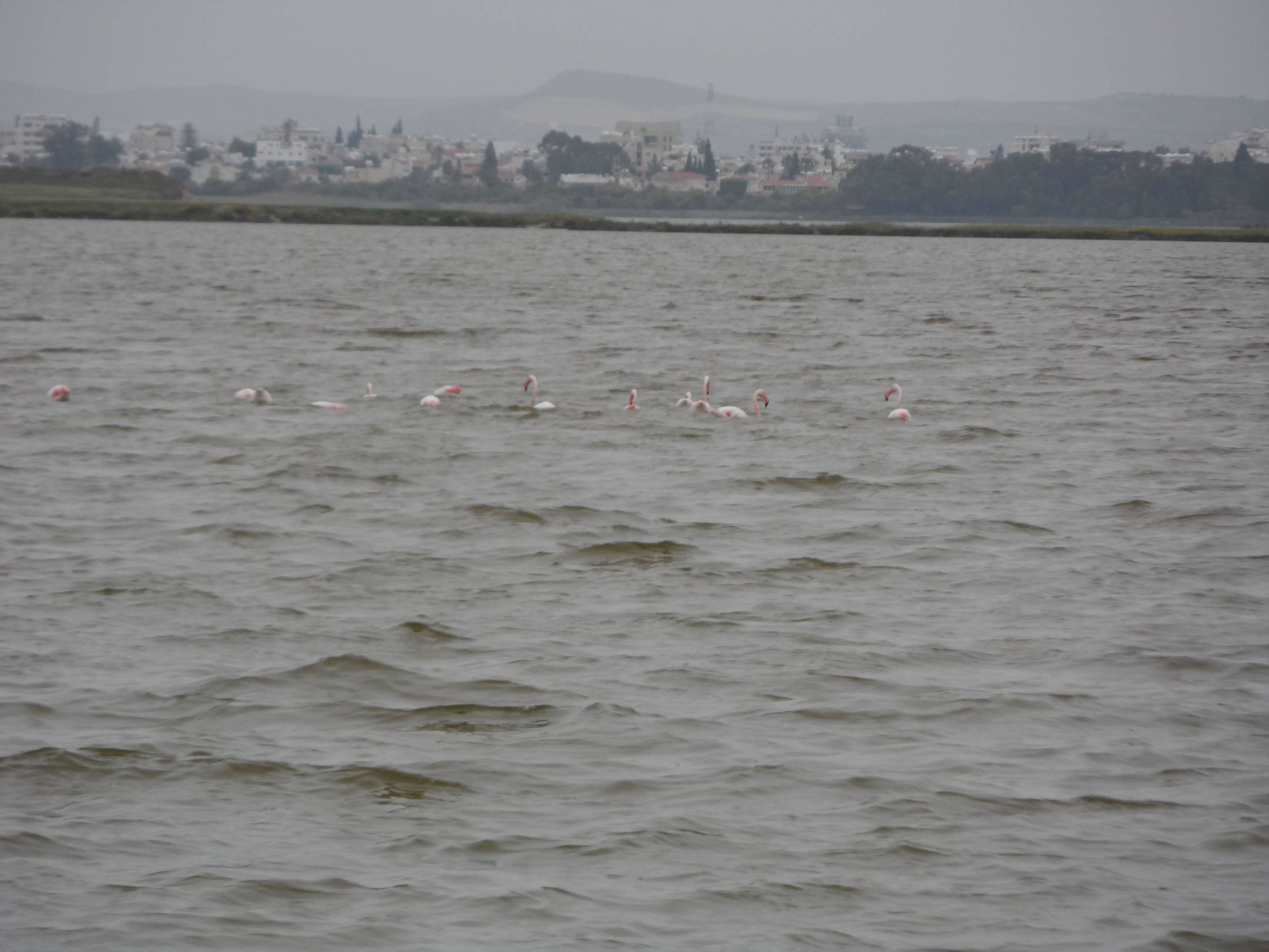 Słone jezioro i flamingi