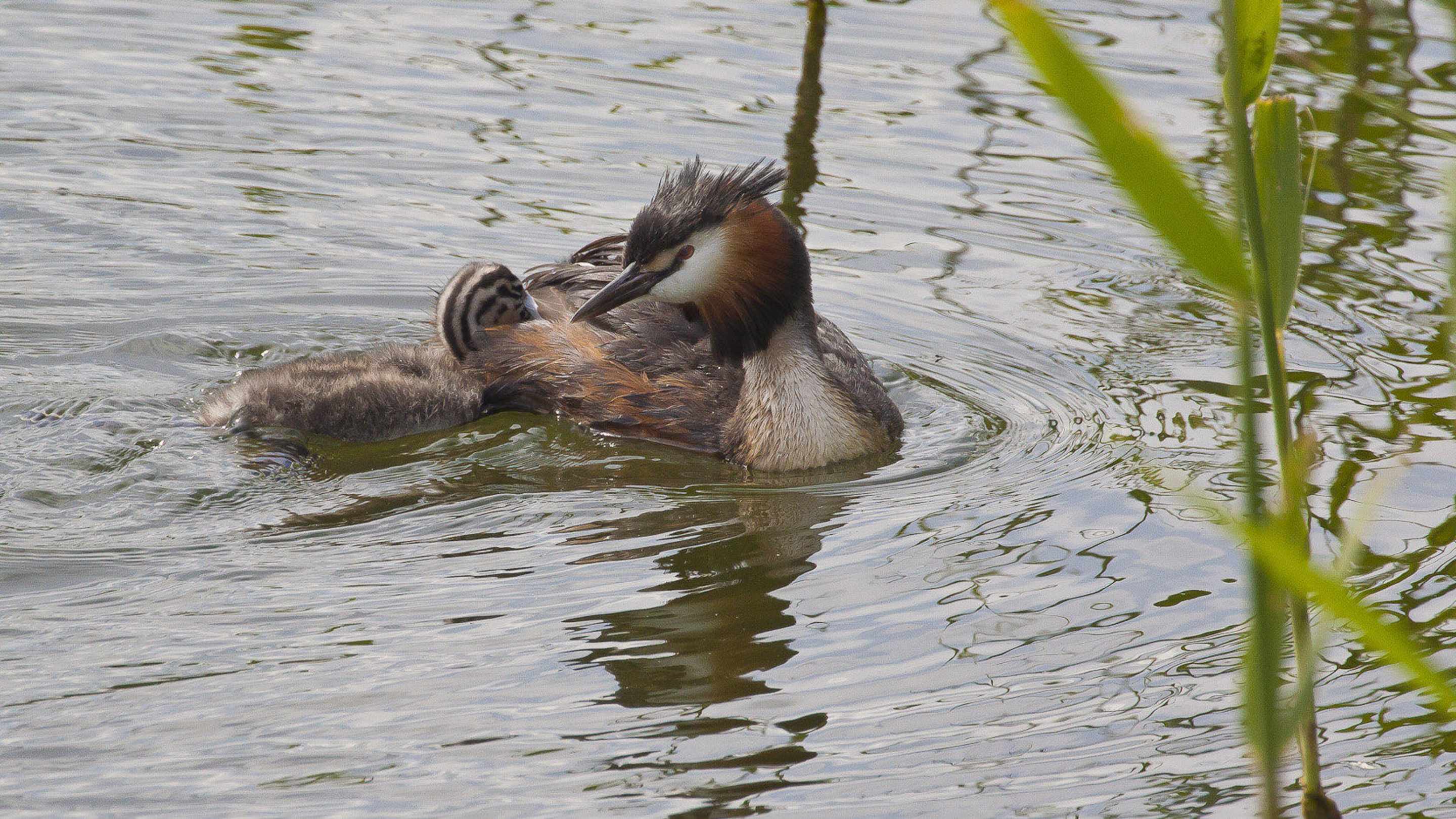Haubentaucher mit Nachwuchs