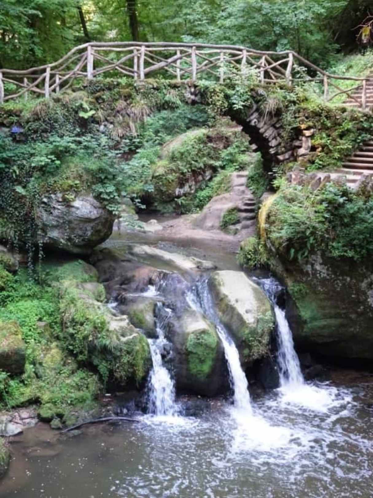 Blick auf den Wasserfall und die Brücke
