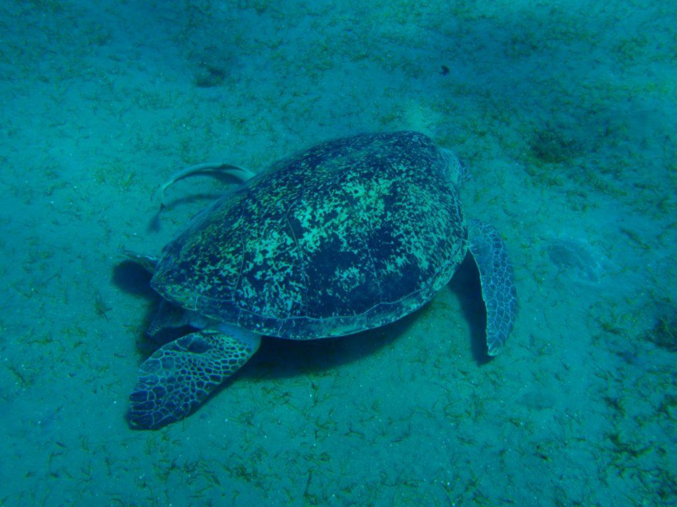 Karettschildkröte mit Schiffshalter in Abu Dabab
