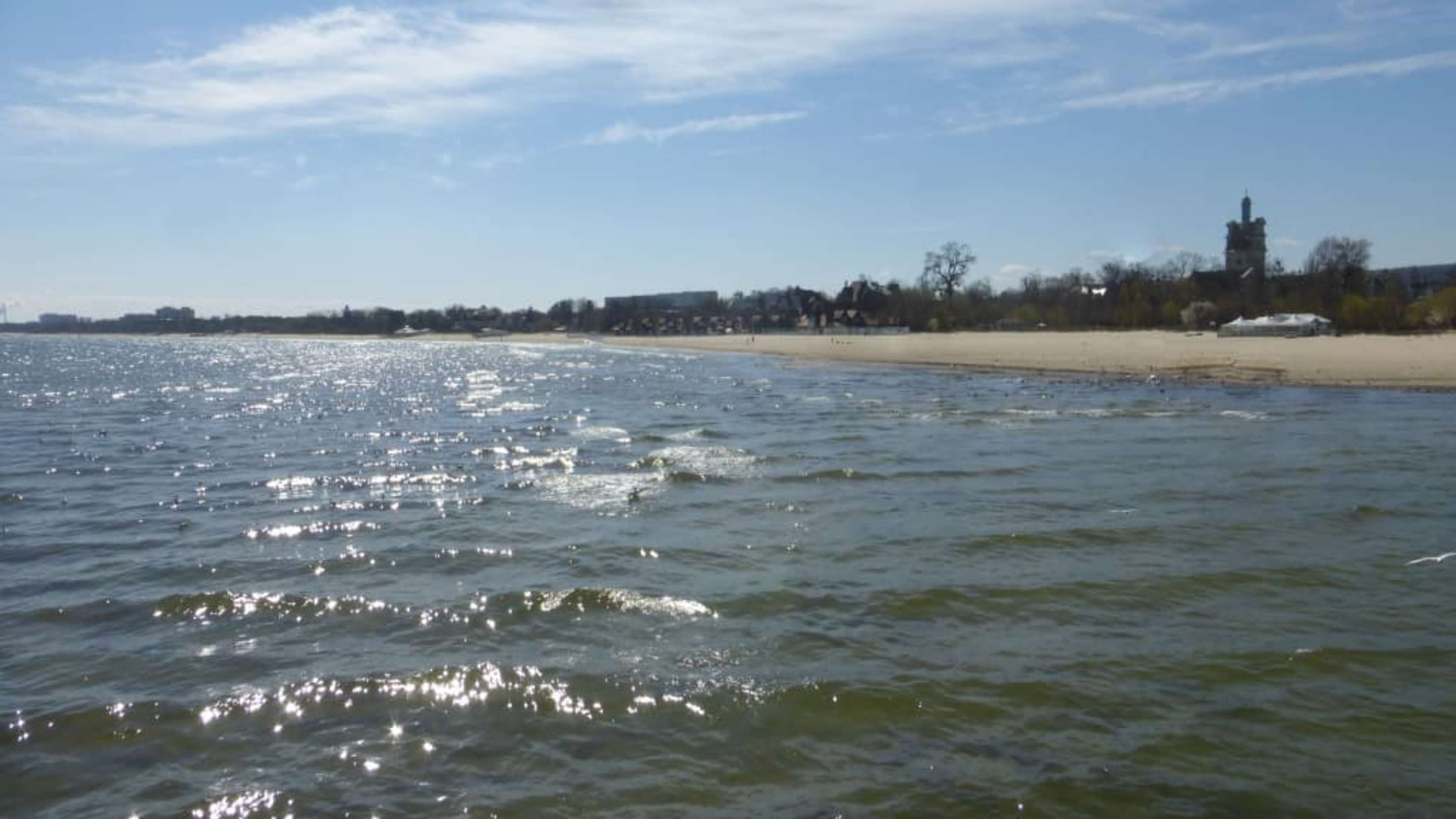 Blick von der Seebrücke zum Strand von Sopot