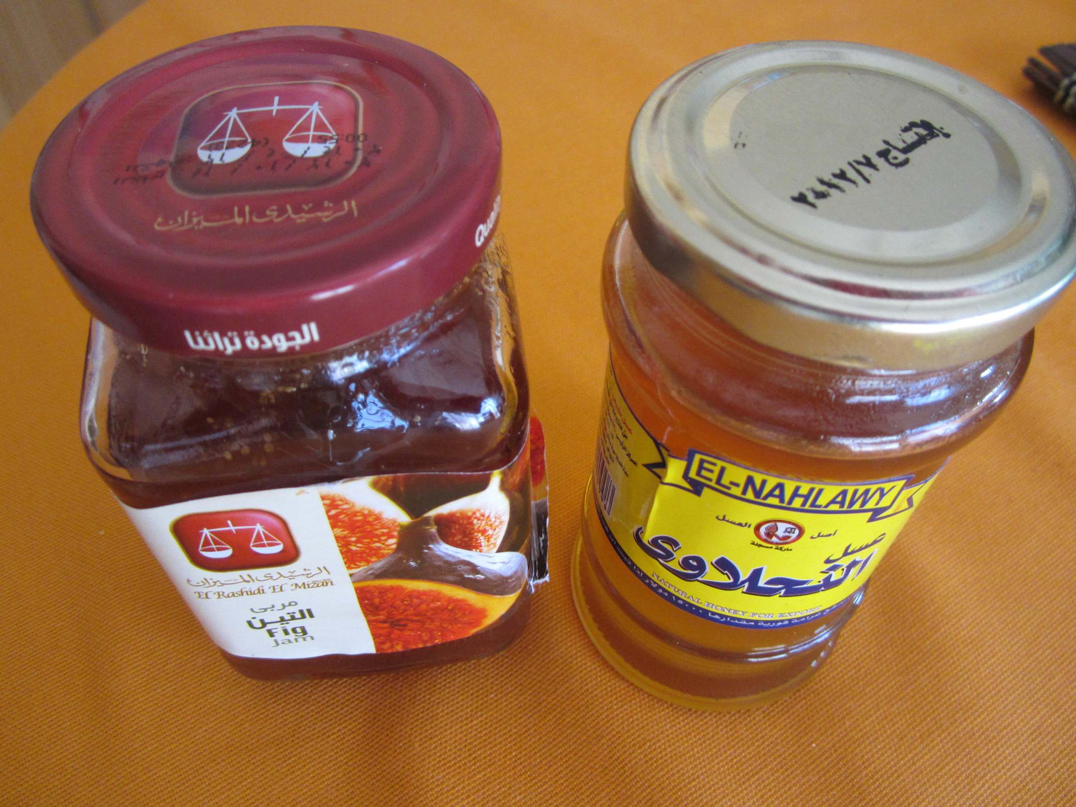Leckerer Honig und Feigenmarmelade
