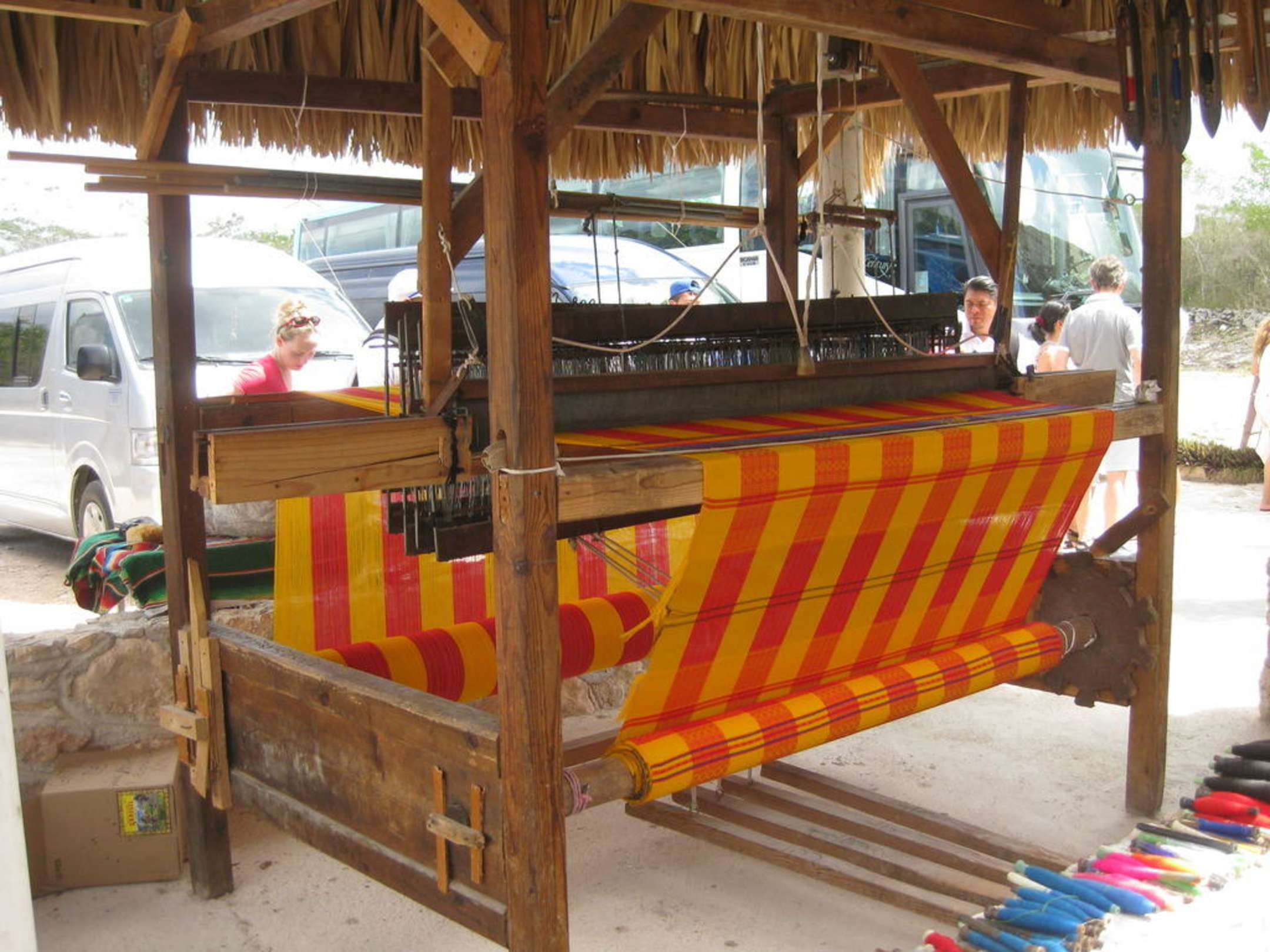 Grosser Webstuhl vor der Fabrik