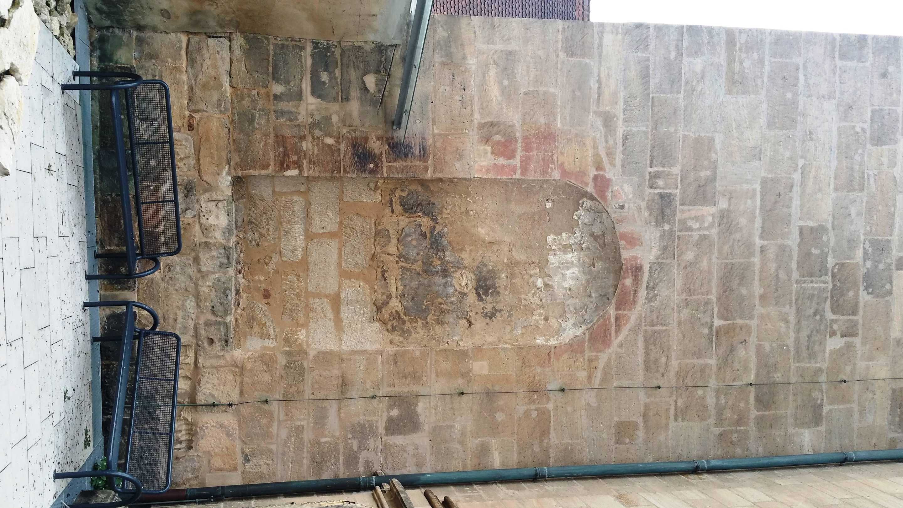 Vor dem Seiteneingang mit Brunnen