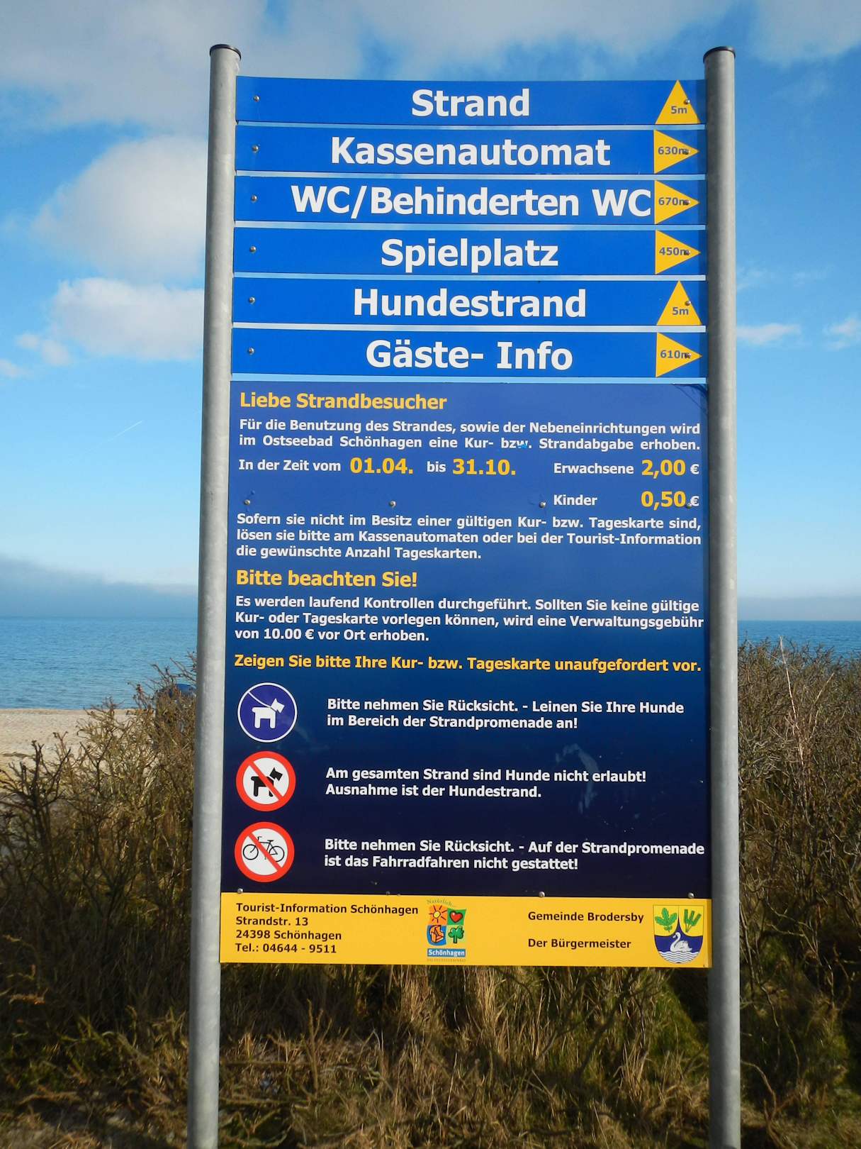 Hinweisschild am Strand