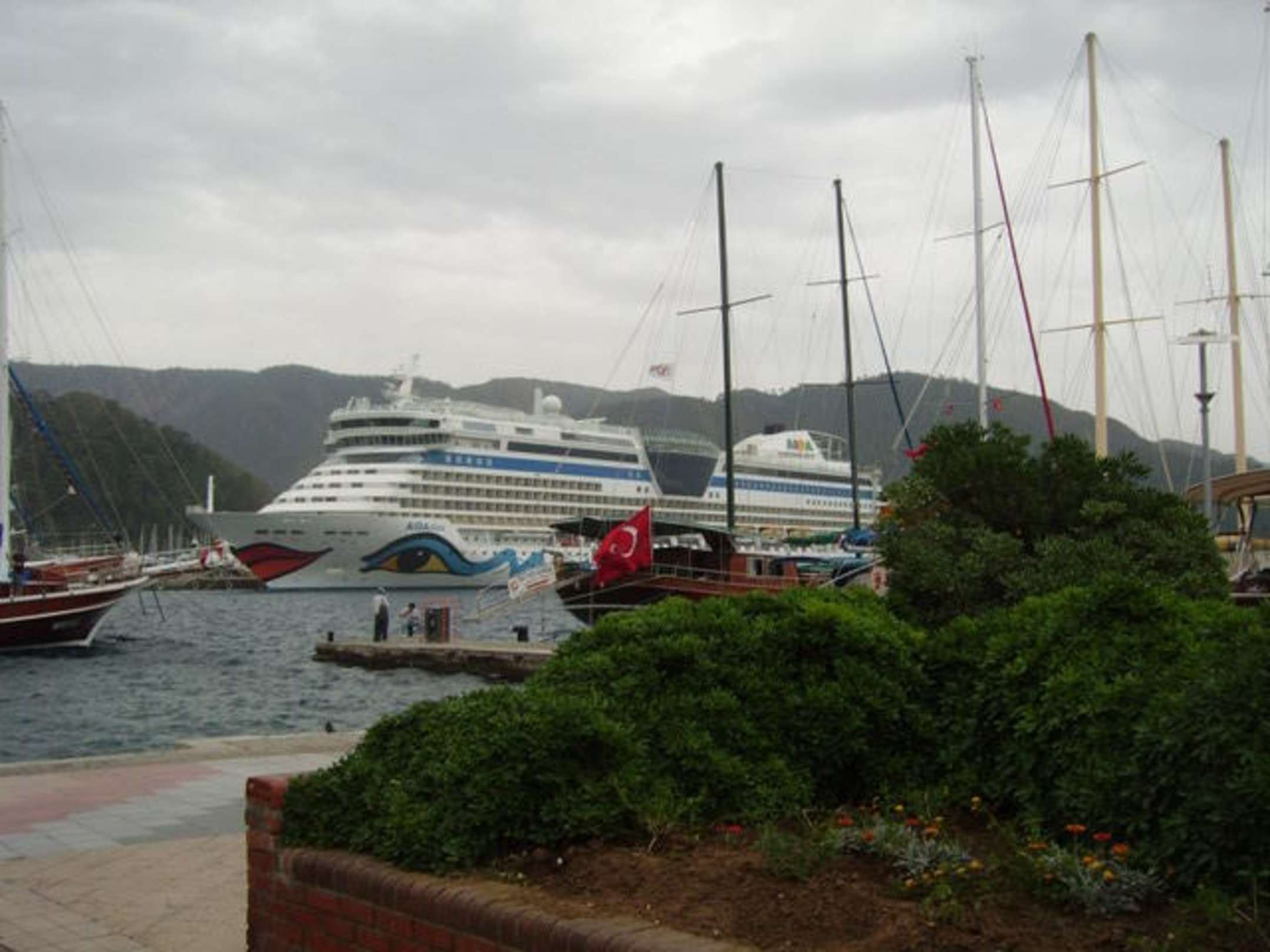 Blick auf die AIDAdiva von der Promenade