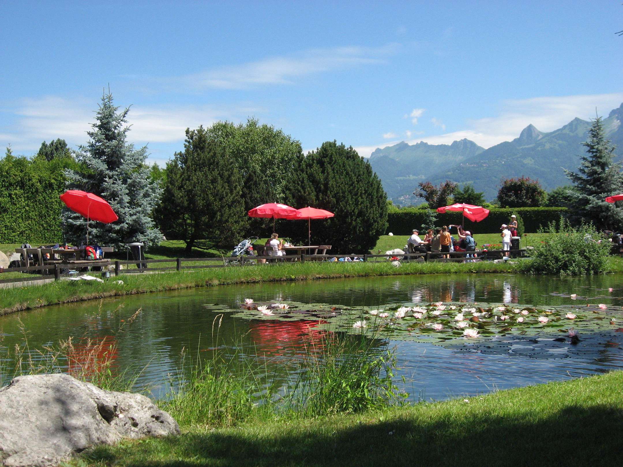 Swiss Vapeur Parc Blick Teich und Berge