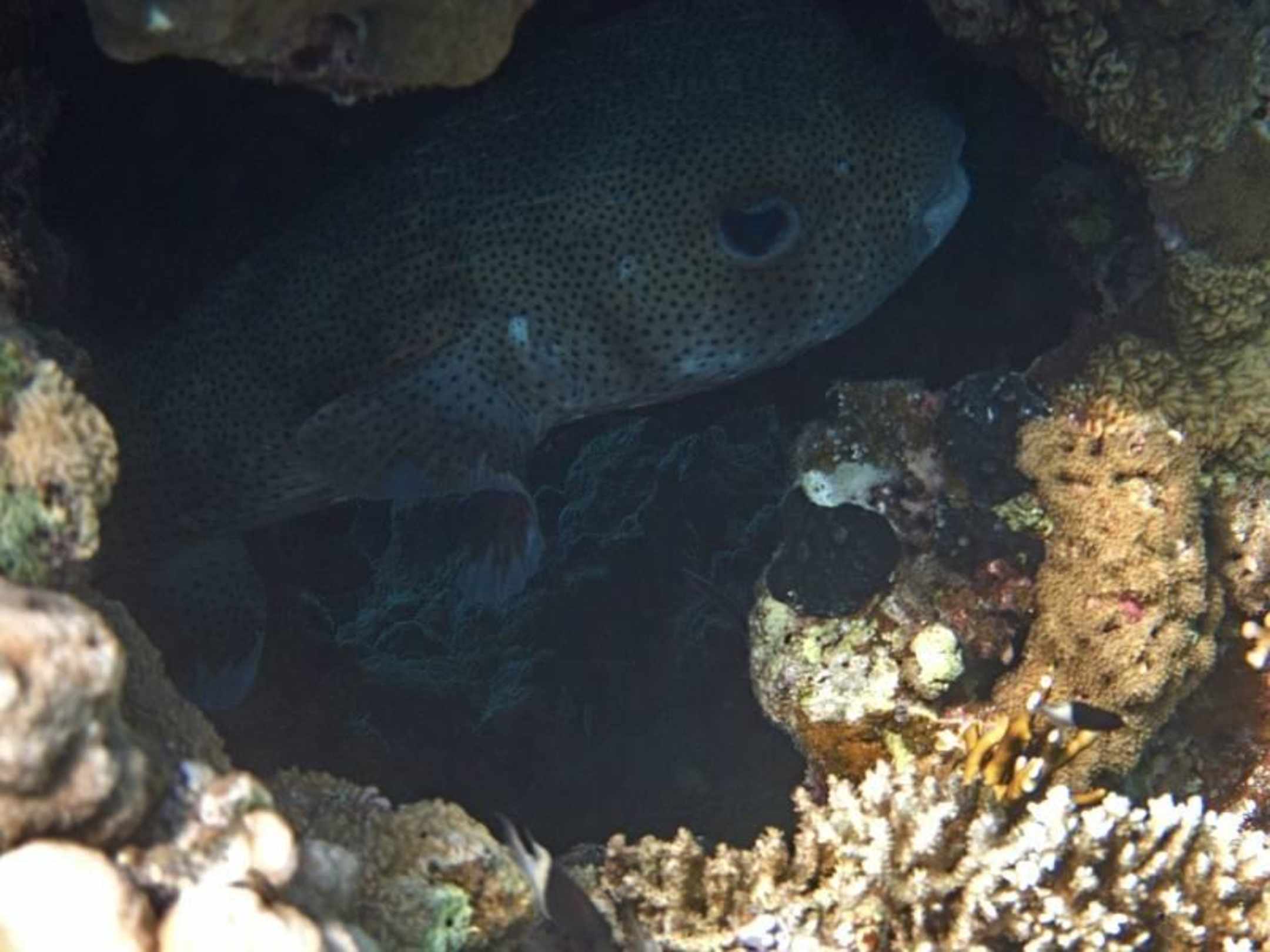 Höhle im Riffstock mit Igelfisch