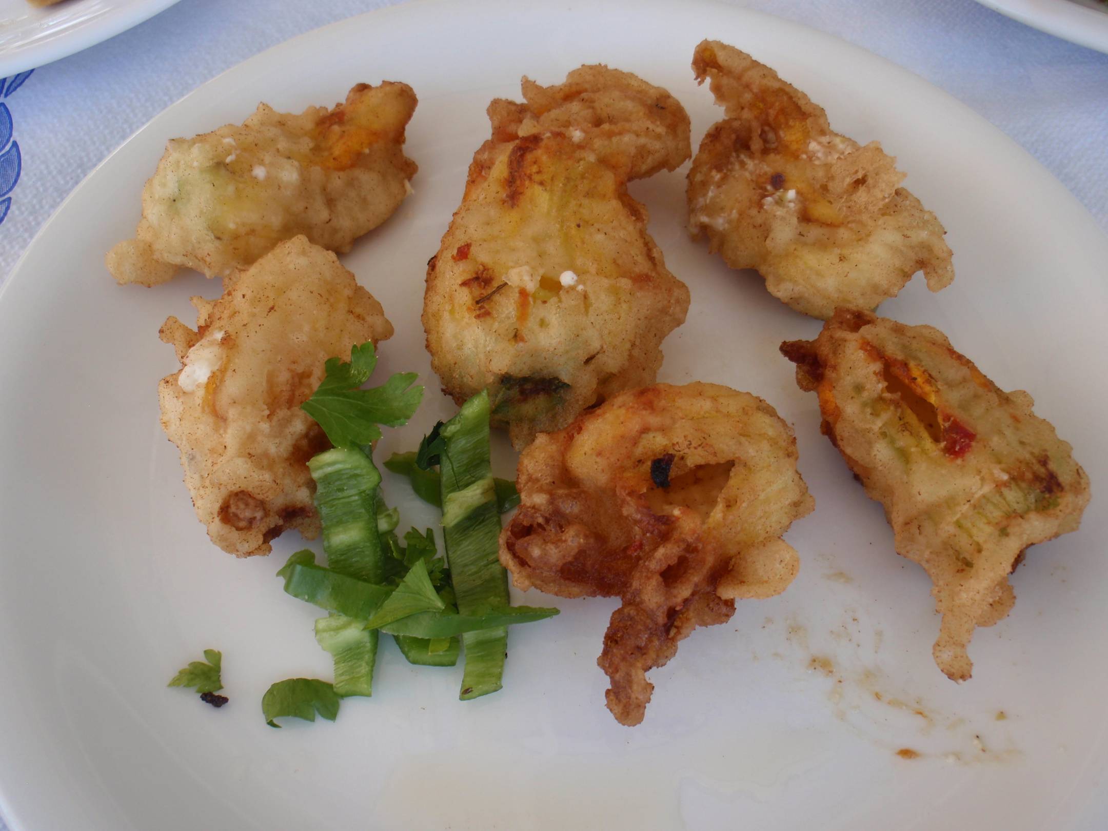 Zucchiniblüten mit Feta gefüllt