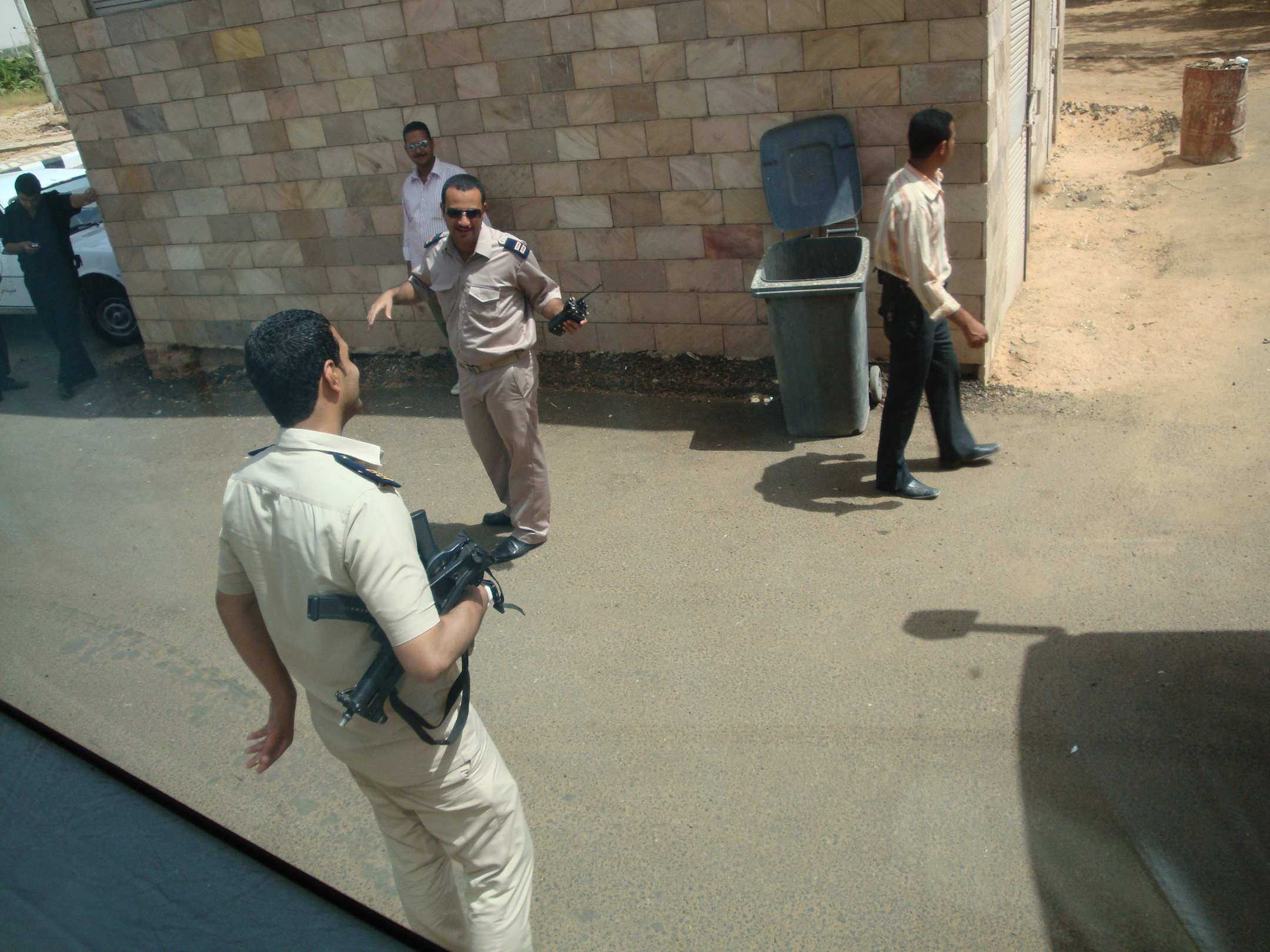 Policjanci ochraniający turystów i świątynię