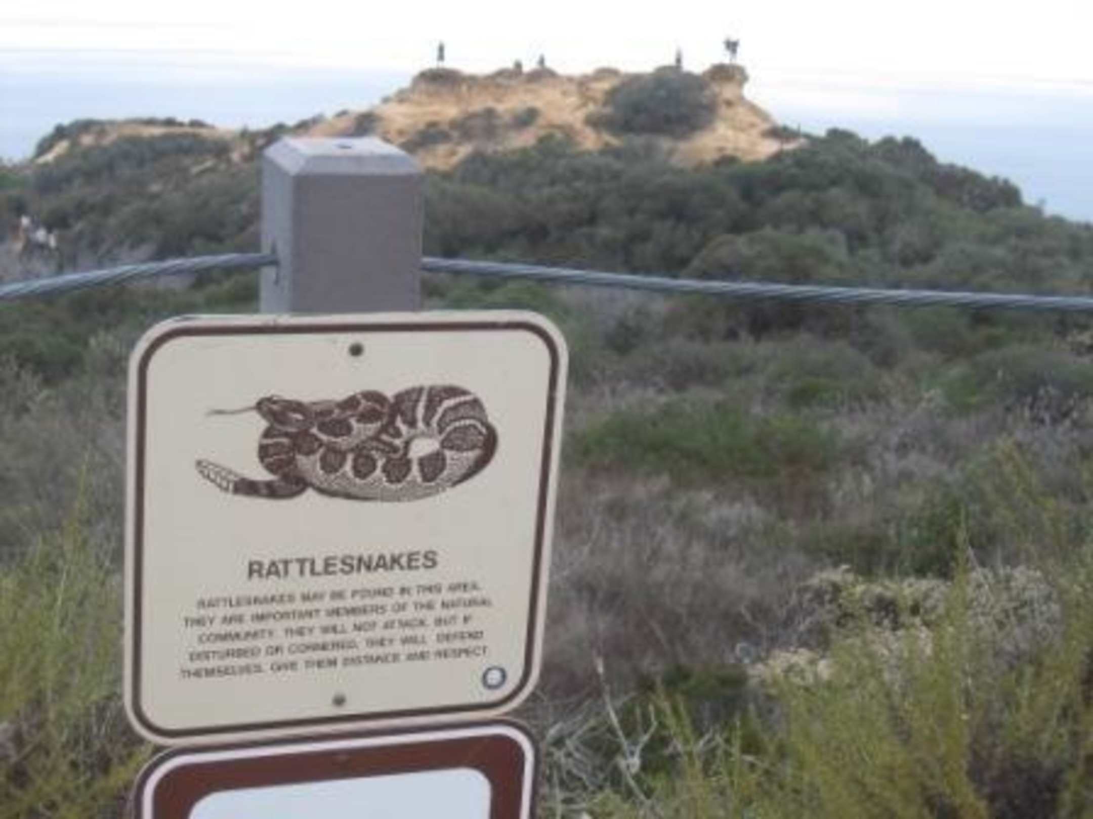 Blick über die Torrey Pines mit Warnschild