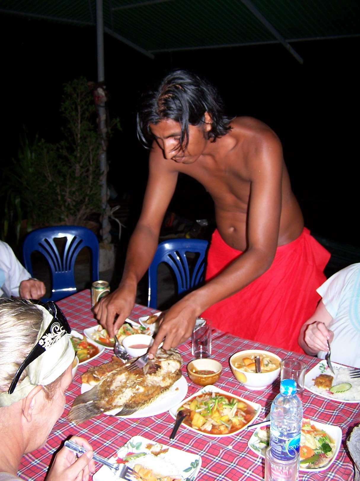 Mogli beim Anrichten des Abendessens