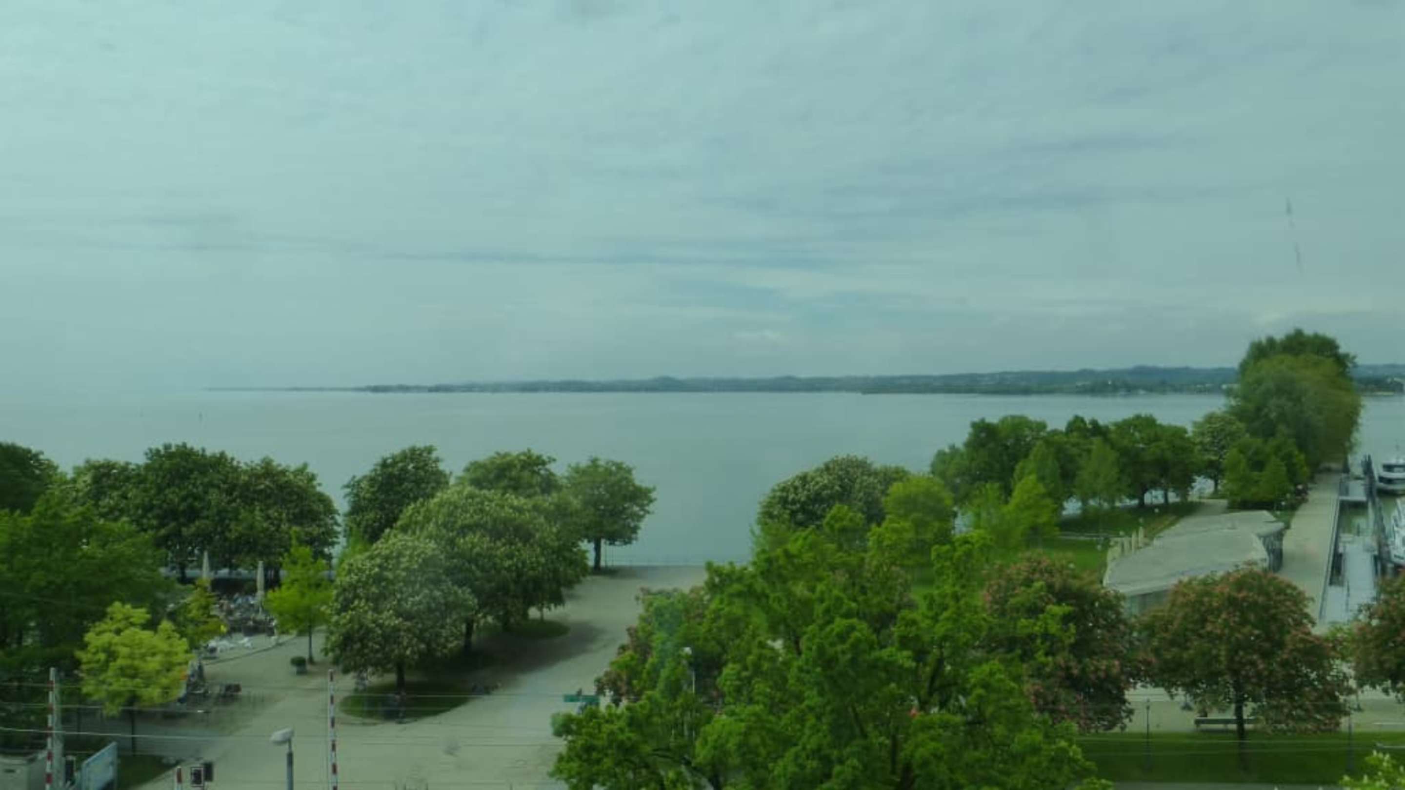 Blick durch das Panoramafenster zum Bodensee usw.