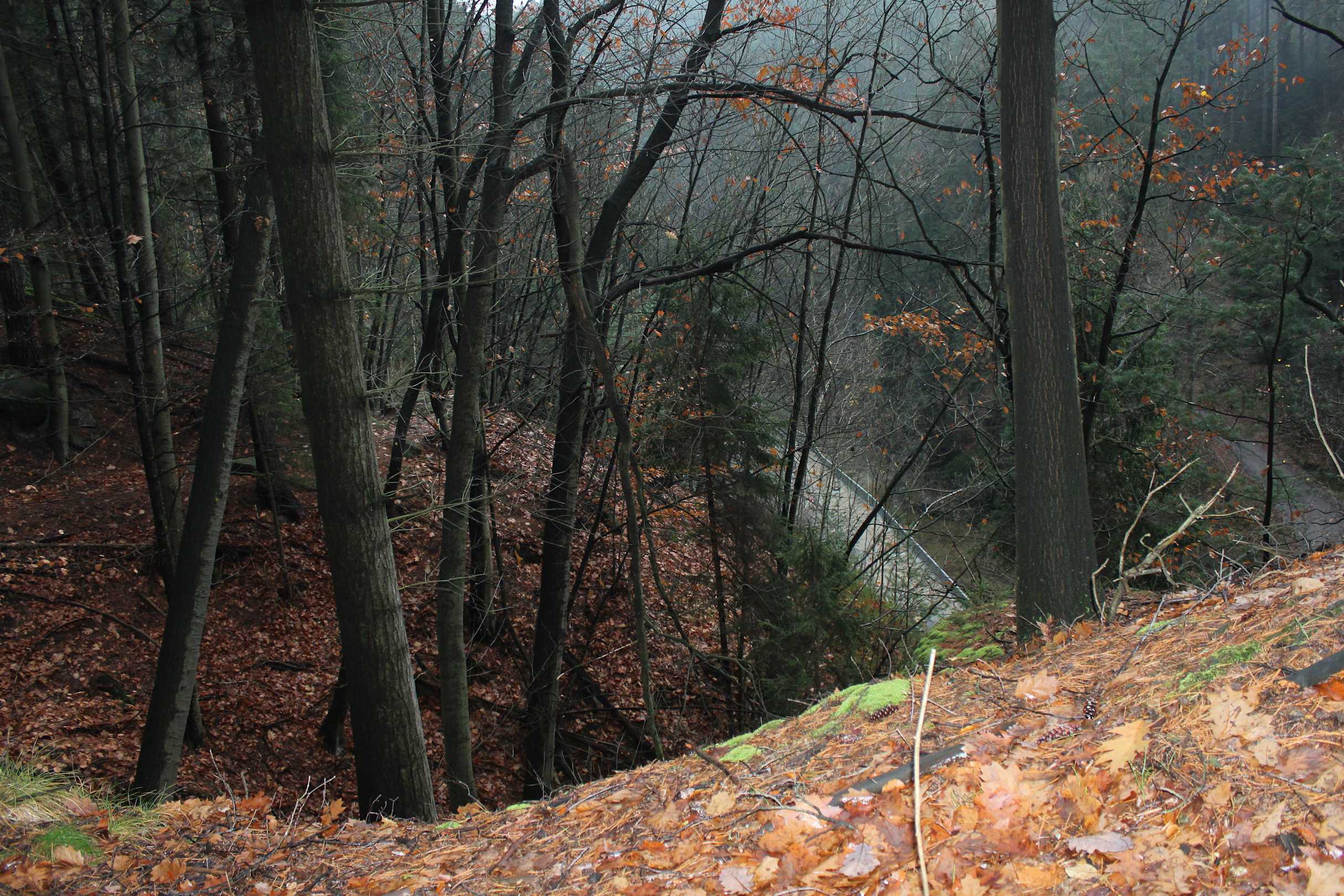 Blick zur Fahrstraße im Tal
