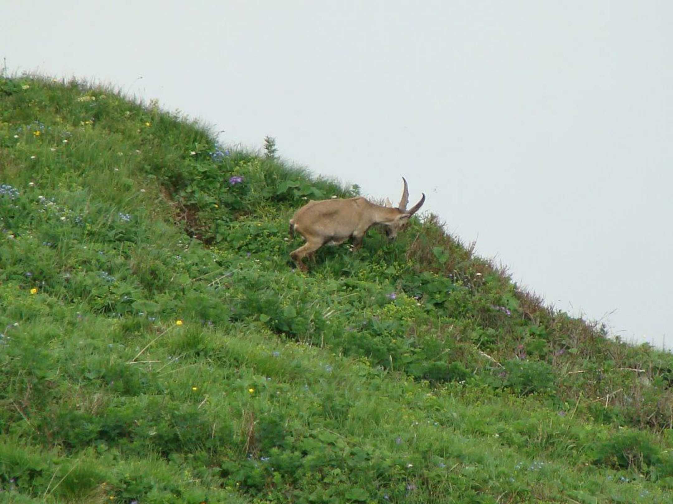 Steinbock hinter dem Gipfelkreuz