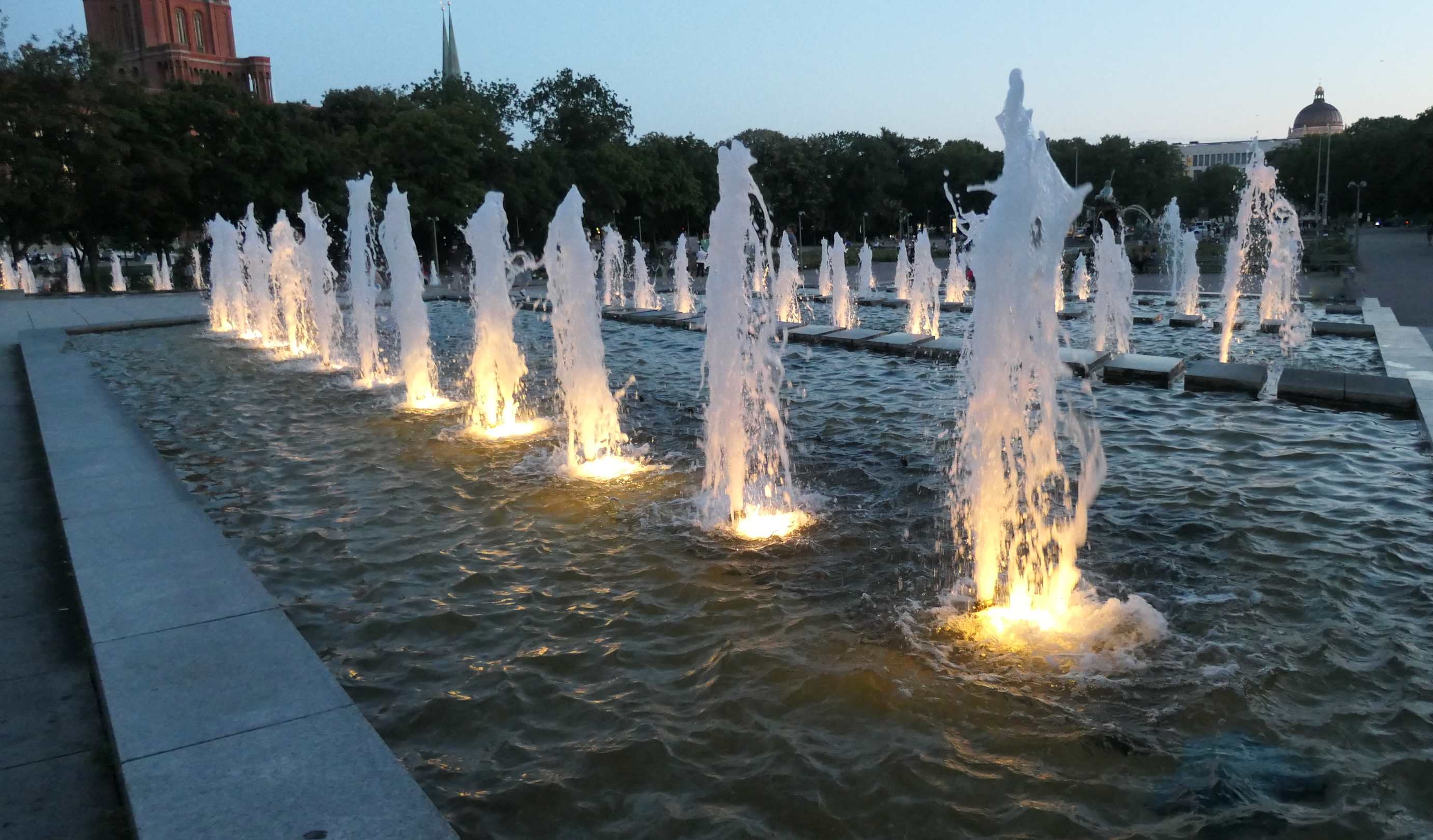 Bei den Wasserkaskaden im Park am Fernsehturm