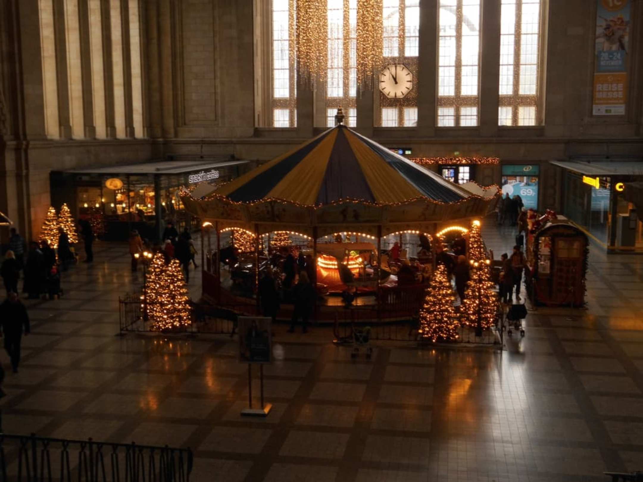 Der Weihnachtsmarkt fängt schon im Bahnhof an.