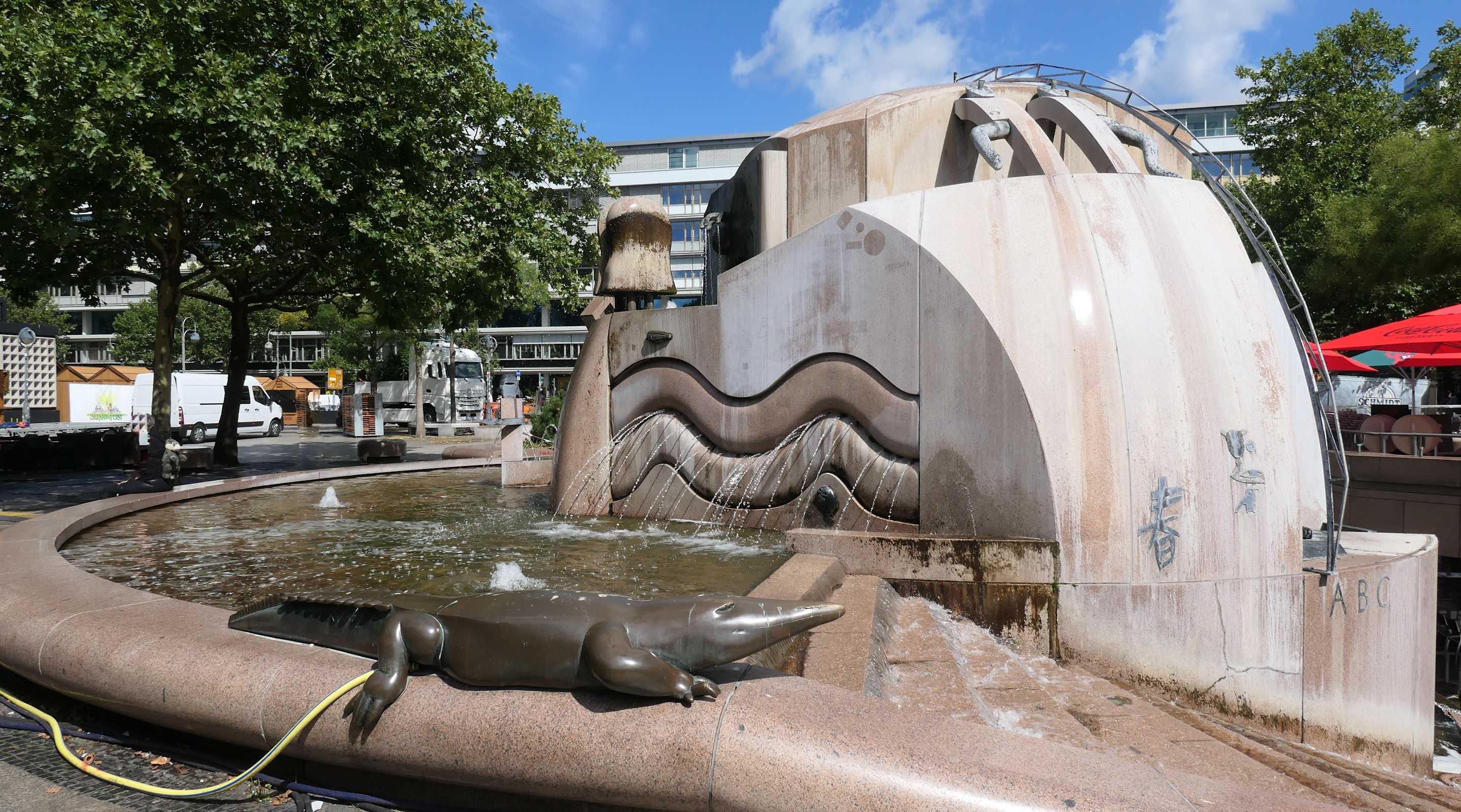 Beim 1983 errichteten Weltkugelbrunnen