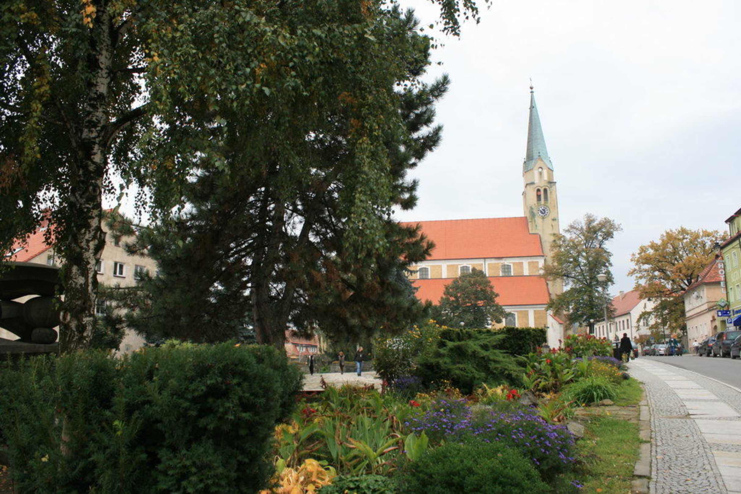 Blick zur Kirche, herrliche Bepflanzung