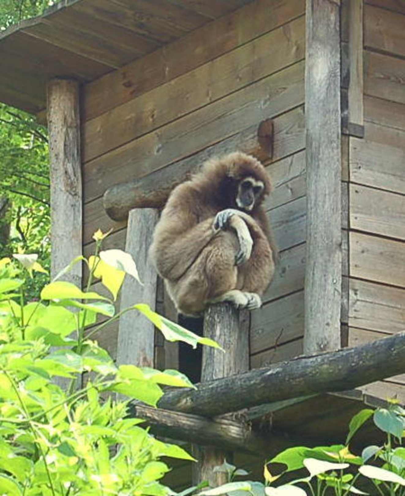 Affe sitzt allein auf Pfosten